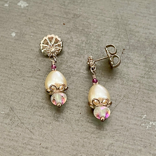 Twilight Coral Sands / beachlove® Sun-Bronzed Silver & Peach Pearl Drop Earrings