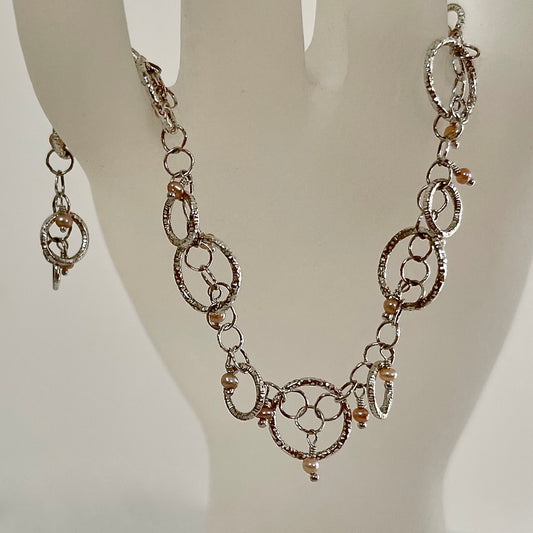 Pearl Pebbles / Sterling Silver Circles beachlove® Bracelet with Pink Freshwater Seed Pearls