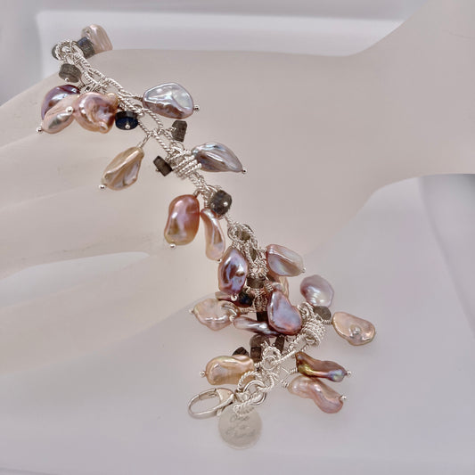Shimmering Pink & Purple Keshi Silver Bracelet