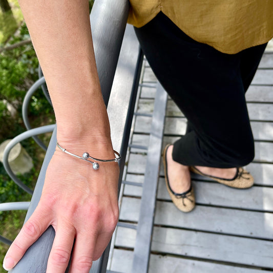 Flexible Sterling Silver Bangle Bracelet with Silvery Dove Gray Pearls