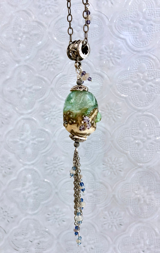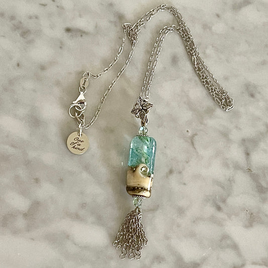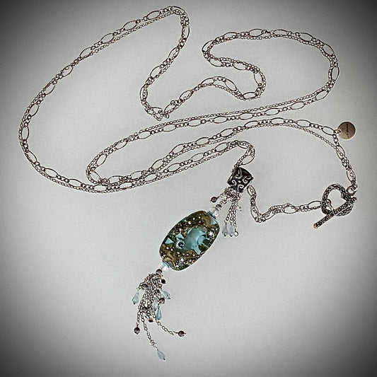 Lakeside Breeze / beachlove® Handmade Glass & Sterling Silver Tassel Pendant Necklace