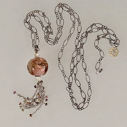 Whispering Sands / beachlove® Handmade Glass Sterling Silver Tassel Pendant Necklace